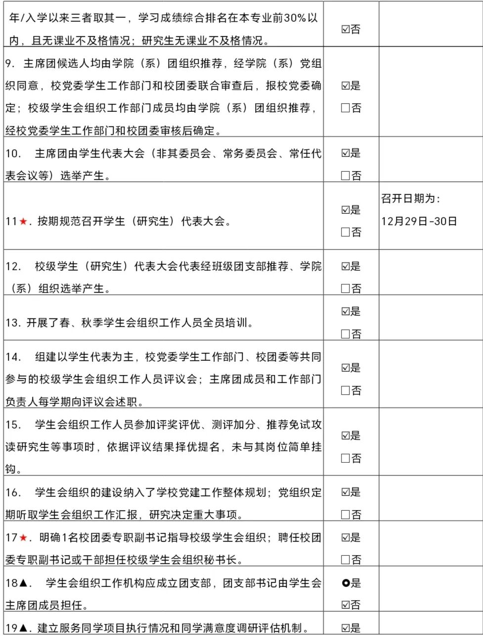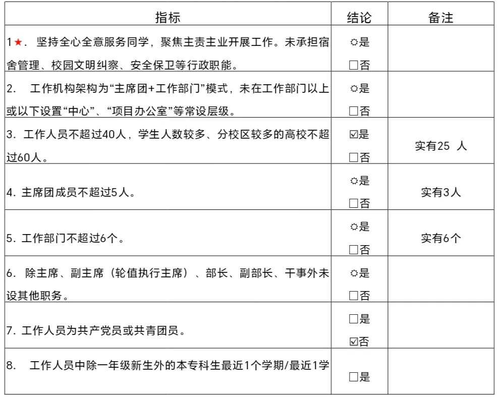 (二)二级学生会组织(含二级院系、书院、分校区等学生会、研究生会)改革自评表