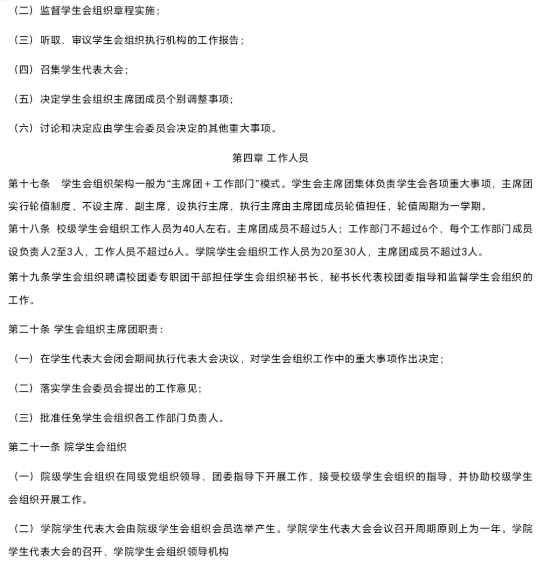 为落实共青团中央、教育部、全国学联联合下发的《关于推动高校学生会(研究生会)深化改革的若干意见》,并结合《关于巩固高校学生会(研究生会)改革成果的若干措施》文件要求,接受广大师生监督,现将我校2024—2025学年学生会(研究生会)改革情况公开如下。