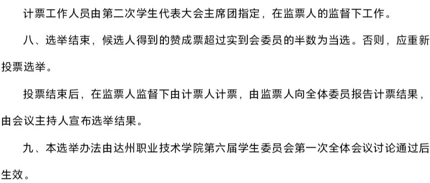根据《中华全国学生联合会章程》和四川省学生联合会的有关规定,在本次选举工作中,共青团达州职业技术学院委员会向院党委呈报了《关于召开达州职业技术学院第六次学生代表大会的请示》院党委常委会研究同意袁山权、肖晴、吴宗滔等3名同学为达州职业技术学院第六届学生会执行主席候选人建议人选。